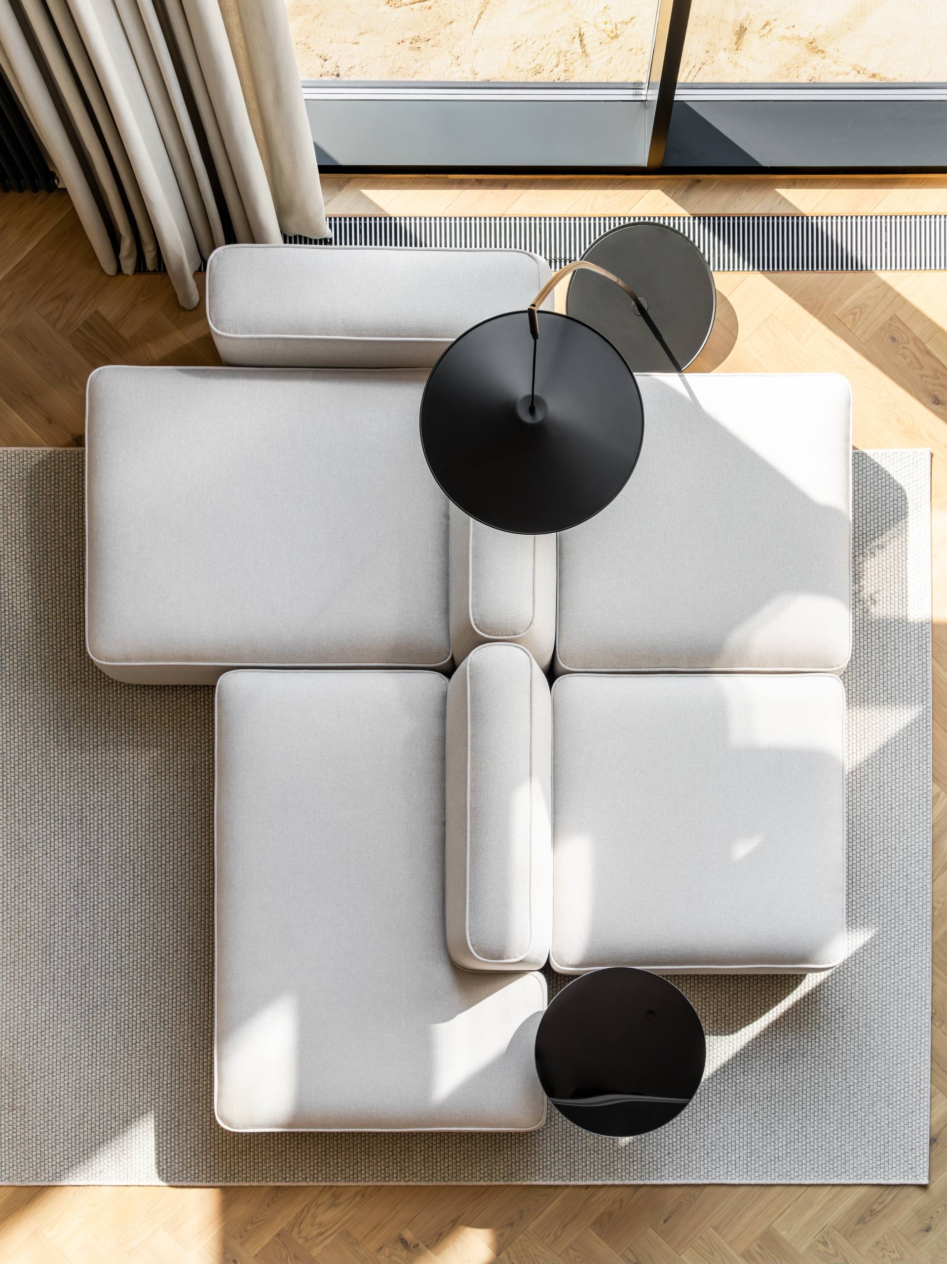Двусторонний модульный диван — это диван, состоящий из независимых модулей, которые можно: